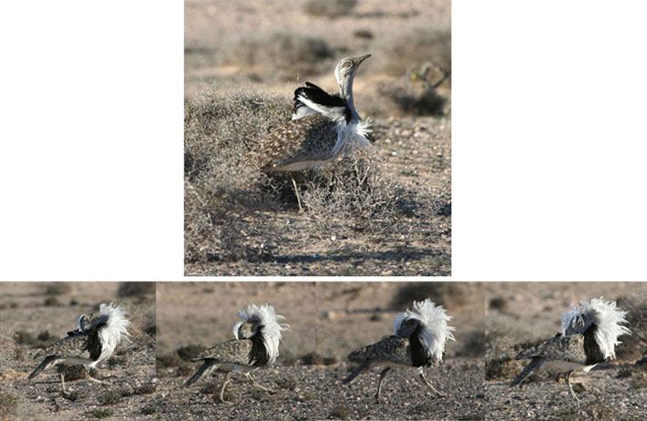 Houbara Bustard Chlamydotis undulata. Display montage.