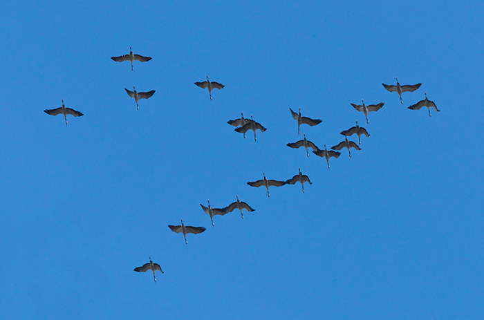 Crane Grus grus, migrating over the Pyrenees.