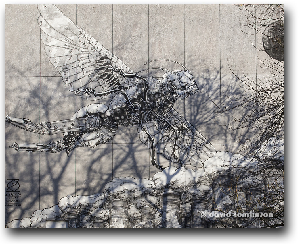 Spanish artist, LIQEN, on the Churchside island next to the Fire Station. LIQEN has a nice website at www.liqen.org.